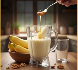 ایک پکا ہوا کیلا ایک گلاس نیم گرم دودھ میں ڈال کر ایک چمچ شہد شامل کریں اور اچھی طرح بلینڈ کریں۔ اسے صبح روزانہ استعمال کریں تاکہ قدرتی توانائی اور مجموعی صحت میں اضافہ ہو۔