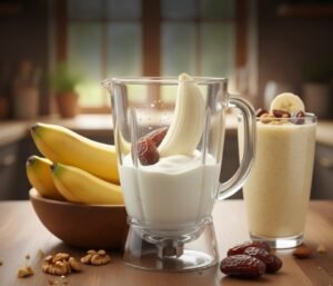 Mix one banana, two dates, and half a cup of yogurt. This drink supports stamina and provides essential minerals for overall male health.